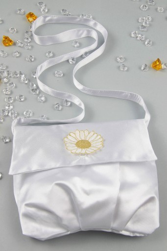 Prezentujemy torebkę komunijną Tp3 z typu na pasek - idealną jako modny dodatek do alby, sukieneczki na komunie lub pelerynki czy sweterka. Można naturalnie kompletować ją do wianka lub rękawiczek, czy nawet butów komunijnych ze względu na charakterystyczne detale wzoru.