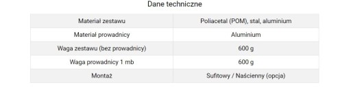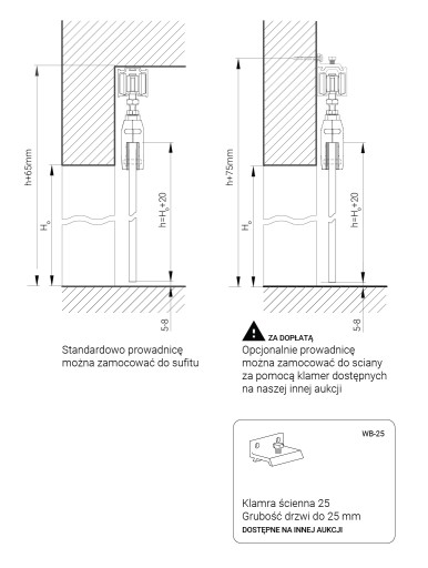 – Montaż do stropu (Opcjonalnie prowadnicę można zamocować do ściany za pomocą klamer dostępnych na naszej innej aukcji)