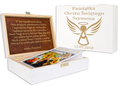 БЕЛАЯ КОРОБКА С БИБЛИЕЙ ДЛЯ КРЕЩЕНИЯ И ПРИЧАСТИЯ ПОДАРОК С ГРАВИРОВКОЙ ДЛЯ РЕБЕНКА