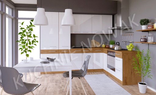 - - kolor frontów szafek dolnych: szary mat (laminat, PCV),