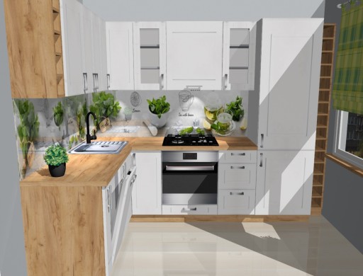 W cenę zestawu zostały wliczone cokoły i ciche domyki do szuflad. Cena zawiera również panele wykańczające widoczne boki szafek w kolorze frontów oraz blaty. W cenę zestawu nie zostały wliczone sprzęty AGD, oświetlenie podszafkowe oraz panel dekoracyjny na ścianę MDF