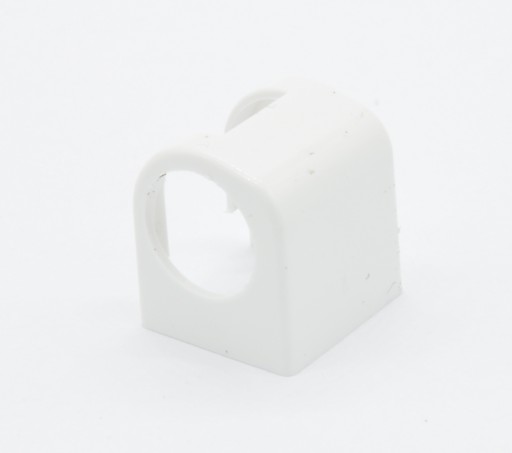 Opis: zaślepka wykonana jest z tworzywa w kolorze białym. Jest to zaślepka dolna zawiasu okiennego dolnego.