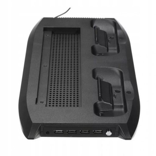 Podstawka umożliwia postawienie konsoli Xbox ONE S na bocznej ściance. Pozwala to na zaoszczędzenie miejsca. Podstawka wykonana jest z mocnego plastiku, dzięki czemu może służyć latami. Stojak wyposażony w 2 wentylatory zapewniające chłodzenie konsoli. Stacja zawiera 2 doki do padów umożliwiające ich ładowanie. Dodatkowo wyposażona jest w 4 porty USB i stojak na 18 gier. Produkt jest fabrycznie nowy.