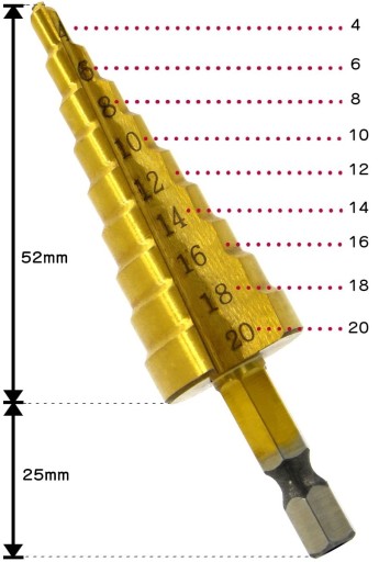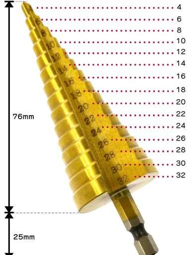 WIERTŁA STOPNIOWE STOŻKOWE WIERTŁO TYTAN 4-32