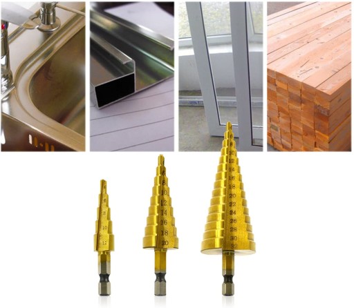 ✅Wysokiej jakości zestaw wierteł stopniowo stożkowych, wykonanych ze stali szybkotnącej HSS.