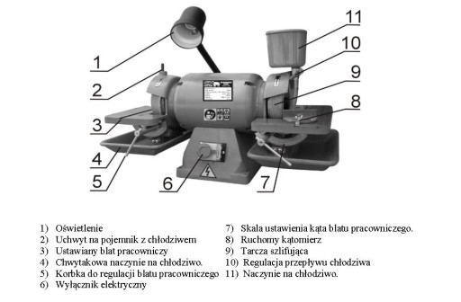 Szlifierka dwu tarczowa jest przeznaczona specjalnie do szlifowania noży tokarskich. Można jej jednak używać również do szlifowania innych narzędzi i elementów. Odpowiednio do używanej tarczy, można na niej szlifować ostrza różnych kształtów i wykonane z różnych materiałów.