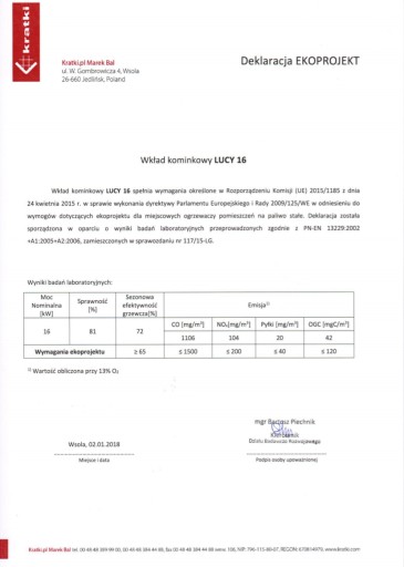 Urządzenie spełnia wymagania Ekoprojektu oraz normy BImSchV 2, wyznaczającej maksymalną emisję CO.
