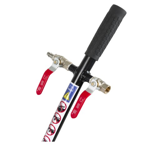 W standardzie ten bałwanek wyposażony jest w zawór bezpieczeństwa. Ta część zabezpiecza podnośnik przed przekroczeniem bezpiecznego ciśnienia - jeżeli ciśnienie w układzie osiągnie 8.3 Bar, zawór odcina dopływ powietrza. Sam zawór znajduje się na na głównym ramieniu - nie na rączce - więc nie ma ryzyka że zaczepisz rączką o inne przedmioty w trakcie manewrowania.