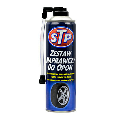 Zestaw naprawczy do opon o rozmiarze od 15 do 22”. Pompuje i naprawia uszkodzoną oponę. Bezpieczny dla kół wyposażonych w czujniki ciśnienia.