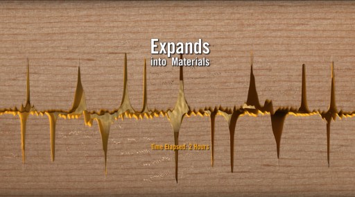 W godzinę lub 2 po nałożeniu kleju reaguje on z powierzchnią, aby rozszerzyć się do 3x swojego pierwotnego rozmiaru i wypełnić luki i nierówne części powierzchni, aby połączyć ze sobą dwa kawałki. (pokazano poniżej po zaciśnięciu i pozostawieniu kleju na 2 godziny)