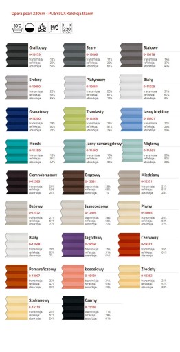 Tkanina Opera Pearl pokryta jest z jednej strony powłoką perłową, która dodatkowo odbija ciepło i obniża temperaturę w pomieszczeniu.
