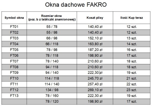 PLISY PRZEZNACZONE DO OKIEN DACHOWYCH FAKRO i VELUX