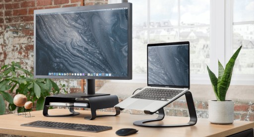 Umieszczenie MacBooka na podstawce Curve nie tylko pozwala na uniesienie go na wysokość odpowiednią do pracy przy biurku ale również zwiększa jego wydajność poprzez swobodną wymianę powietrza nawet podczas pracy na pełnej mocy. Gdy dodasz zewnętrzny monitor otrzymasz ergonomiczne centrum dowodzenia – edytuj wideo, stwórz prezentacje Keynote lub po prostu prowadź swój biznes.