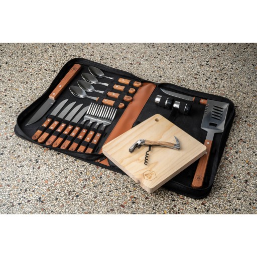 Ten oryginalny i funkcjonalny zestaw, stanowi doskonały pomysł na prezent dla każdego kto lubi biesiadować na świeżym powietrzu.