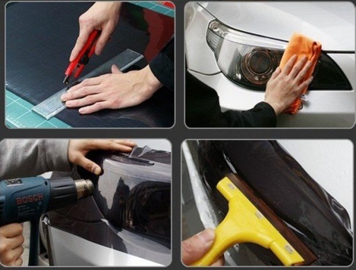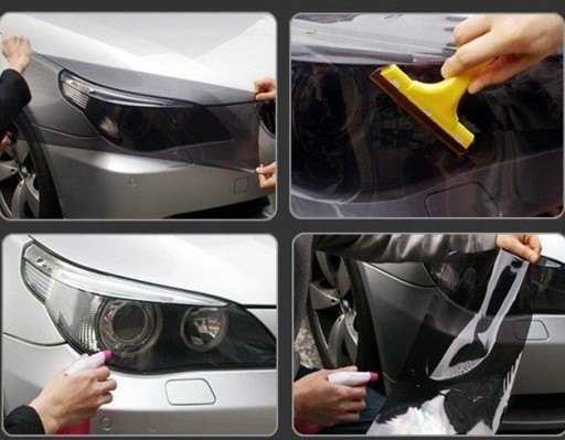Folia przyciemniająca samoprzylepna czarna jasna lub ciemna o właściwościach termoplastycznych.