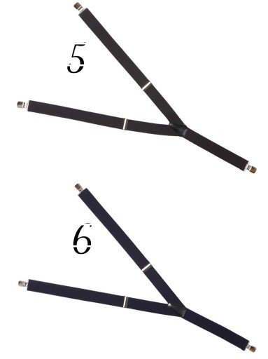 W oficjalnych sytuacjach nie chcemy jednak przyciągać wzroku tym elementem garderoby. Dlatego dobrałbym szelki pod kolor koszuli lub marynarki. Szelki do garnituru ślubnego podlegają tym samym regułom. W przypadku garniturów codziennych czy zestawów nieformalnych można się już pobawić kolorami szelek. Działają tu podobne zasady jak w przypadku poszetki. Można barwą szelek nawiązać do krawata, muszki lub do jednego z wątków tkaniny garniturowej czy do skarpetek. Wolno też po prostu wprowadzić dodatkowy kolor czy odważny wzór, na przykład wielobarwny nadruk. W końcu szelek zasadniczo nie pokazujemy, więc możemy sobie pozwolić na minimum ekstrawagancji.