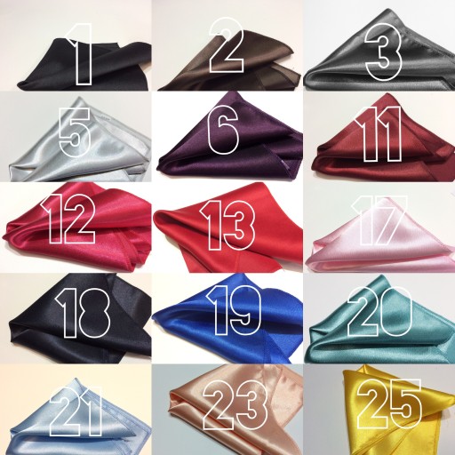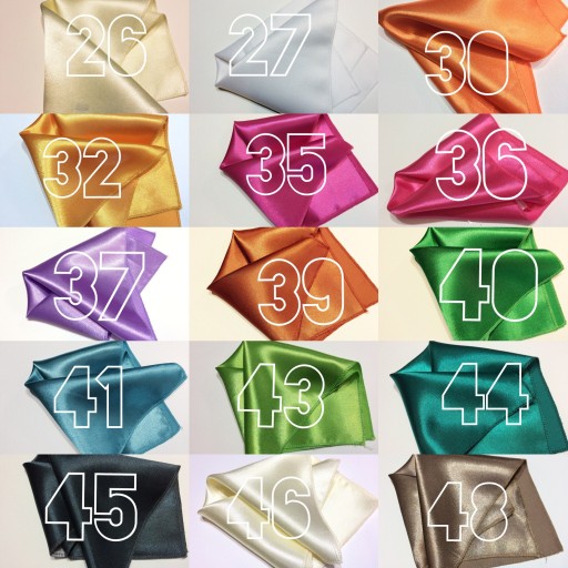 Kolor materiału poszetek jest taki sam jak kolor muszek z naszych aukcji, więc zachęcamy do zrobienia sobie kompletu.