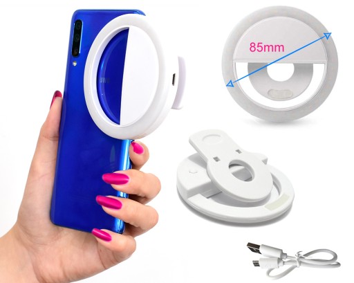 Dzieki dodatkowemu doświetleniu zdjęć Twoje Selfie zyskaja nowego wymiaru. Jeśli zależy Ci na tym, żeby Twoja fotka nie była zbyt ciemna i rozmyta, aTwoja twarz wyglądała na promienną to jest idealny gadżet dla Ciebie! Posiada wbudowane diody LED, które zapewniają mocne podświetlenie w trakcie wykonywania zdjęć. Lampa nie daje cienia( bezcieniowa ). Posiada regulację stopnia intensywności światła, barwa światła to 5600K. Mocowana jest do smartfona łatwy sposób za pomocą klamry.Lampa na klamrze posiada wkładki zapobiegające zsunięciu się jednocześnie sprawi, że klips nie porysuje telefonu.