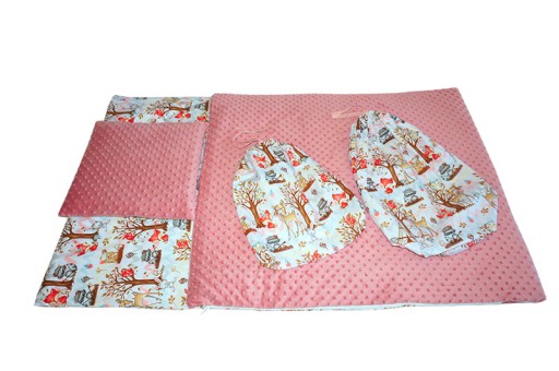 Zestaw sprawdzi się nie tylko jako pościel w przedszkolu i żłobku. Można go łatwo zapakować do woreczka i zabrać ze sobą w podróż. Stanowi również alternatywę dla tradycyjnej pościeli do łóżeczka dla rozkopujących się maluszków w nocy.