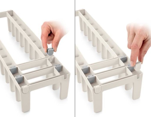 Na organizerze należy umieścić białe nóżki antypoślizgowe i włożyć go do szuflady lub szafki kuchennej