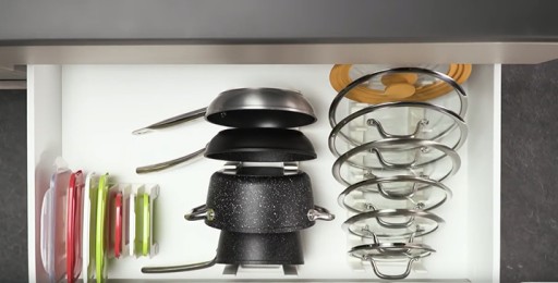 ✅ Doskonały do przejrzystego przechowywania aż 10 pokrywek.
