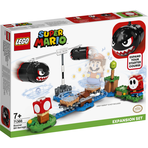 - Zestaw dodatkowy Ostrzał Boomer Billów (71366) pozwala dzieciom szybko kręcić się dookoła i zbierać monety, dzięki czemu zabawa z zestawem LEGO® Super Mario™ Przygody z Mario — poziom startowy jest jeszcze większa.