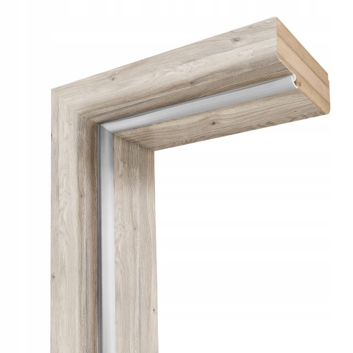 - Ościeżnica posiada ukośne przycięcie elementów ościeżnicy pod kątem 45 stopni oraz przygotowane otwory do umieszczenia w nich śrub mocujących zapewniające idealne dopasowanie skosów.
