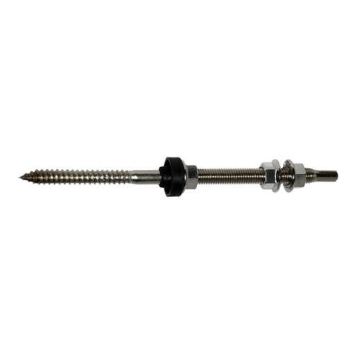 Podwójnie gwintowana śruba do instalacji fotowoltaicznych na dachach z blachy falistej z drewnianą lub betonową konstrukcją nośną.