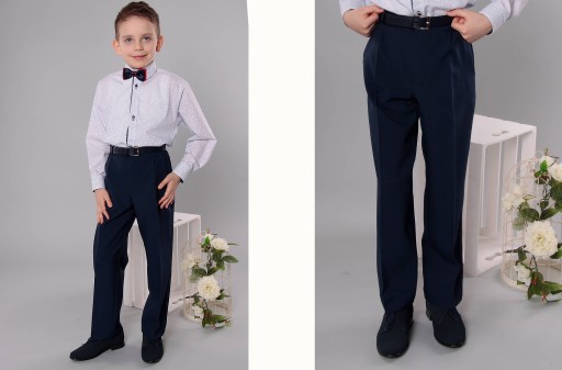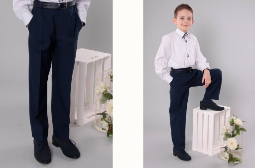 Niezbędnym dodatkiem do alby lub komży dla chłopca są spodnie komunijne - elegancki element chłopięcego ubioru nie tylko pod albę ale również na przyjęcie lub do szkoły.