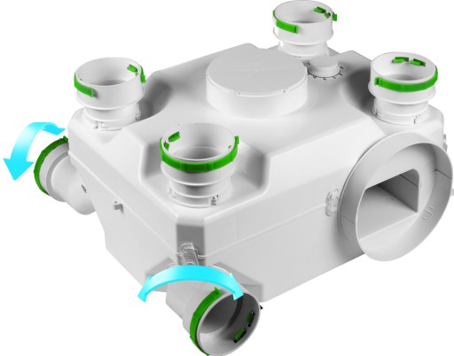 Wentylator centralny jest innowacyjnym produktem ze względu na uniwersalne dostosowanie kierunków podłączenia kanałów wentylacyjnych.