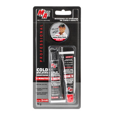 Mieszanka MA Professional to szybkoutwardzająca się masa epoxydowostalowa przeznaczona do naprawy uszkodzonych/pękniętych przedmiotów wykonanych z różnych stopów metali, drewna, wyrobów ceramicznych, wyrobów z tworzywa sztucznego i wielu innych materiałów. Skutecznie reperuje pęknięte bloki silnikowe, chłodnice, obudowy podzespołów mechanicznych, uszkodzone połączenia grzejników oraz szereg innych elementów. Produkt tworzy bardzo twarde spoiwo odporne na działanie temperatur do 150oC. oraz jest odporny na działanie olejów samochodowych, przekładniowych i hydraulicznych, benzyny, wody oraz wielu innych substancji. Wstępne utwardzenie po upływie od 4 do 10 minut w zależności od temperatury otoczenia.