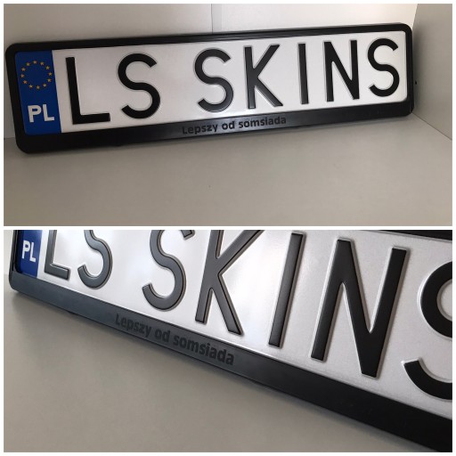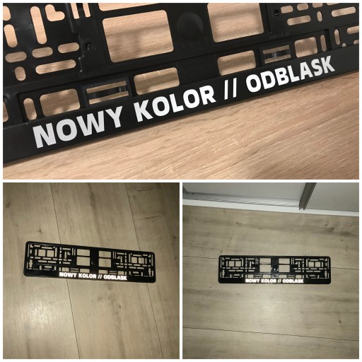Aukcja dotyczy ramki tablicy rejestracyjnej UE koloru czarnego z własnym napisem z folii w kolorach do wyboru.