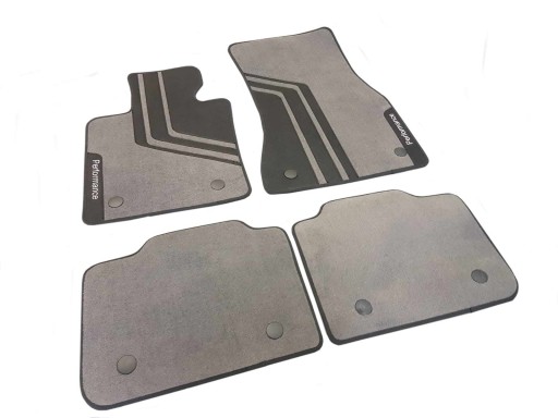 Niepowtarzalne i jedyne dywaniki welurowe do środka w kolorze jasnoszarym ze wstawkami w kolorze czarnym z napisem Performance.