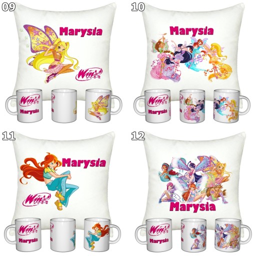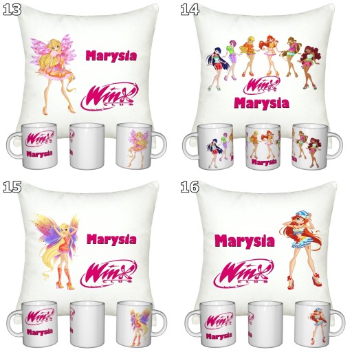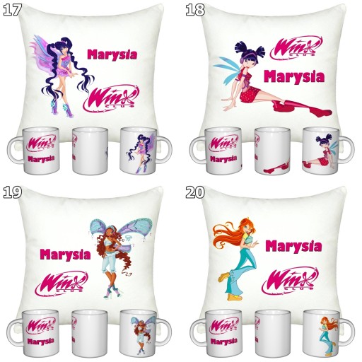 ZESTAW KLUB WINX KUBEK + PODUSZKA + GRATIS IMIĘ LUB INNY WŁASNY TEKST NA OBYDWU PRODUKTACH