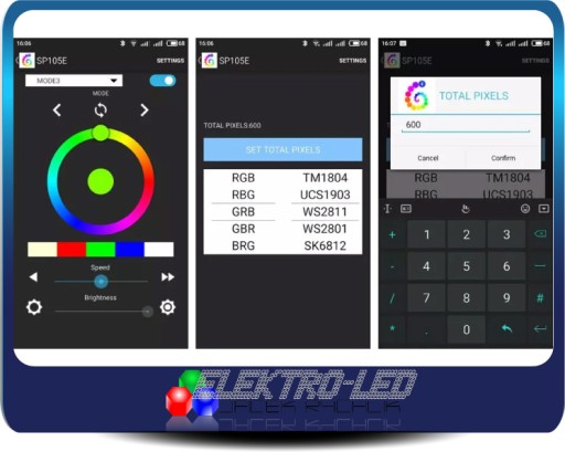 - Obsługuje prawie każdy rodzaj układu scalonego sterownika LED z jednym lub dwoma przewodami- DAT + CLK;