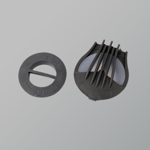 Powietrze jest wdychane i wdychane przez dwa 3-częściowe zawory automatyczne.
