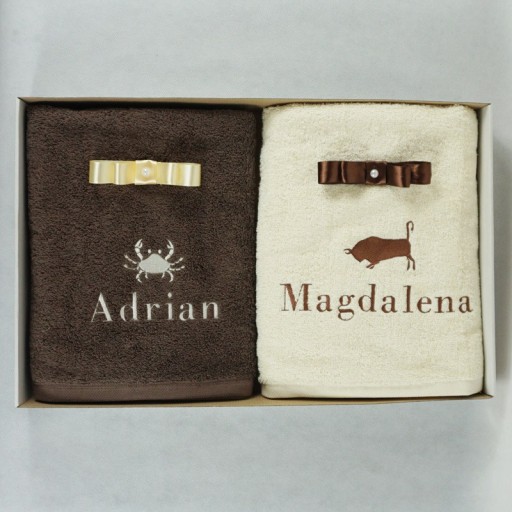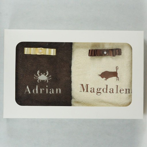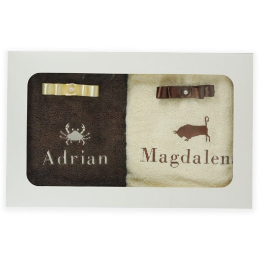 2x ręcznik kąpielowy 70x140cm w ozdobnym kartonie + haft znaku zodiaku i Twoje imię