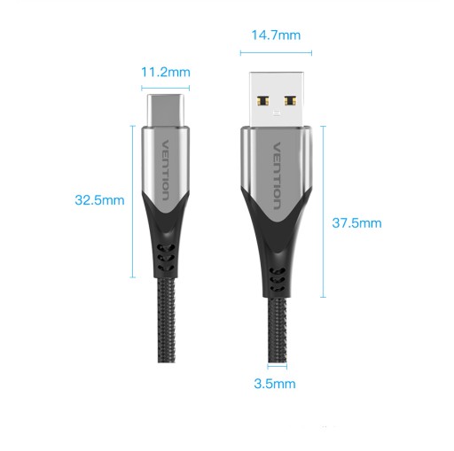Прочный USB-кабель VENTION — USB Type-C, 3A, плетеный, 0,25