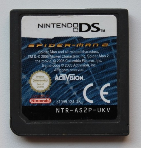 Sprzedam grę na przenośną konsolę Nintendo DS, tytuł to Spider-Man 2, wersja europejska w języku angielskim. Gra jest używana i 100% sprawna, sprzedaję samą grę bez pudełka tak jak widać na zdjęciach.