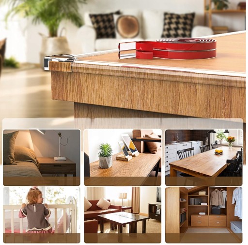 Taśma ochronna na kanty ranty, wyposażona w taśmę klejącą, jest łatwa do przyklejenia do różnych powierzchni dzięki swojej elastyczności i giętkości, co pozwala na dopasowanie do każdego kształtu. Jest wodoodporna, elastyczna i łatwa do czyszczenia - wystarczy przetrzeć zabrudzoną powierzchnię szmatką, aby była znów czysta. Taśma zabezpieczająca kanty mebli idealnie sprawdza się w domach z małymi dziećmi, zapewniając spokój i bezpieczeństwo. Można ją zastosować na różne przedmioty, co czyni ją uniwersalną i praktyczną. Jest estetyczna i dyskretna, nie wpływając z daleka na wygląd pomieszczenia. Można ją zastosować na: