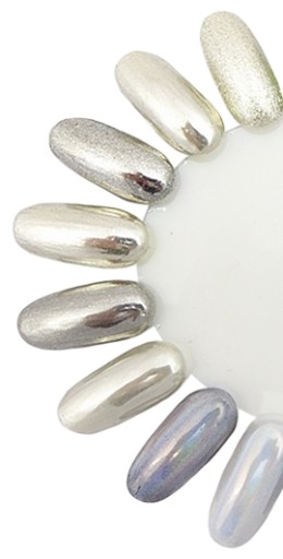 Na uprzednio położony żel lub lakier hybrydowy pokryty topem (pozbawiony warstwy dyspersyjnej) delikatnie wetrzeć pyłek za pomocą pacynki. Po chwili pojawi się cudowny połysk z chromowym efektem ! Następnie ponownie pokryć topem.