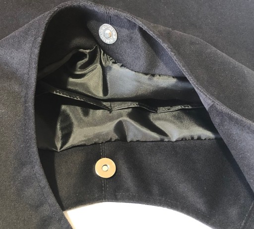 Torebka jest zapinana na magnes, wykończona podszewką z dwiema kieszonkami