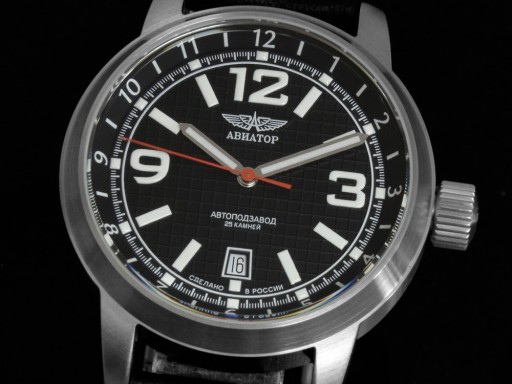 Automatyczny zegarek renomowanej rosyjskiej firmy Aviator. Zegarek charakteryzuje się mocnym i niezawodnym szwajcarskim mechanizmem ETA 2824 oraz czytelną klasyczna tarczą. Indeksy oraz wskazówki pokryte zostały warstwą fosforyzującą, która sprawia, że możemy odczytać godzinę we wszystkich możliwych warunkach. Wysokiej jakości skórzany paski doskonale pasują do całości. Zegarki są limitowane i każdy ma wybity indywidualny numer.