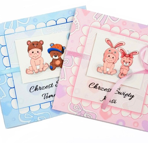 PRZEDMIOTEM SPRZEDAŻY SĄ PIĘKNE ZAPROSZENIA NA CHRZCINY Z MISIEM I CHŁOPCEM 3D. ZAPROSZENIA SĄ JEDYNE W SWOIM RODZAJU. WYKONANE Z NAJWYŻSZEJ JAKOŚCI PAPIERU. ZAPROSZENIA MAJĄ WYDRUKOWANE WYBRANE PRZEZ PAŃSTWO IMIĘ DZIECKA TAK BY TYLKO WYPISAĆ INNE INFORMACJE TAKIE JAK: IMIĘ I NAZWISKO ZAPRASZANEJ OSOBY, DATA, MIEJSCE. PERSONALIZACJA NA ŻYCZENIE. NA INNEJ AUKCJI WERSJA DLA DZIEWCZYNKI.