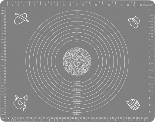 - posiada naniesione miarki w centymetrach i calach, skale (kółka) przydatne podczas przygotowywania np. ciasta,
