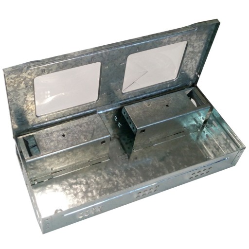 Pułapka wyposażona jest w okienko rewizyjne, które pozwala na szybkie sprawdzenie, czy szkodnik został złapany.