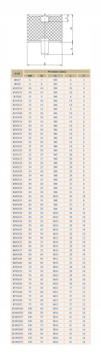POZOSTAŁE WYMIARY TEGO TYPU WIBROIZOLATRA ZNAJDĄ PAŃSTWO W SERII TYP "B" NA SAMYM DOLE OFERTY