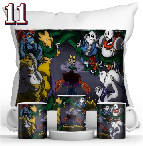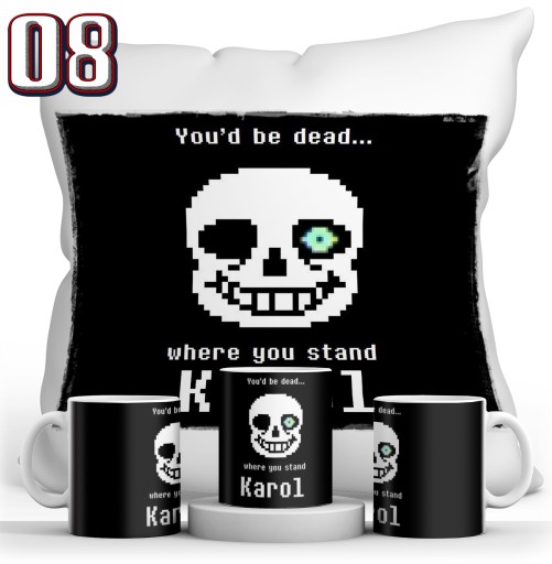Zestaw Poduszka + Biały kubek - UNDERTALE + w cenie możliwość nadrukowania imienia lub innego tekstu na produkcie.
