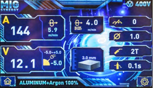 Produkt wyposażony jest w synergiczny system do spawania MIG/MAG z możliwością wprowadzenia ręcznej korekty parametrów. Urządzenie umożliwia wybór następujących programów: stal CO2, stal mieszanka, aluminium, spawanie drutem proszkowym, jak również pracę w trybie spawania manualnego.