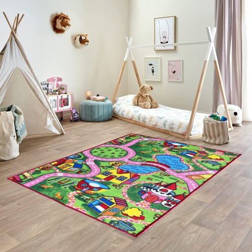 Wspaniały dywan do pokoju dziecięcego, przedszkola i szkoły. Idealny do urządzania ciekawej zabawy na podłodze. Żywe kolory i ciekawy wzór dywanika.